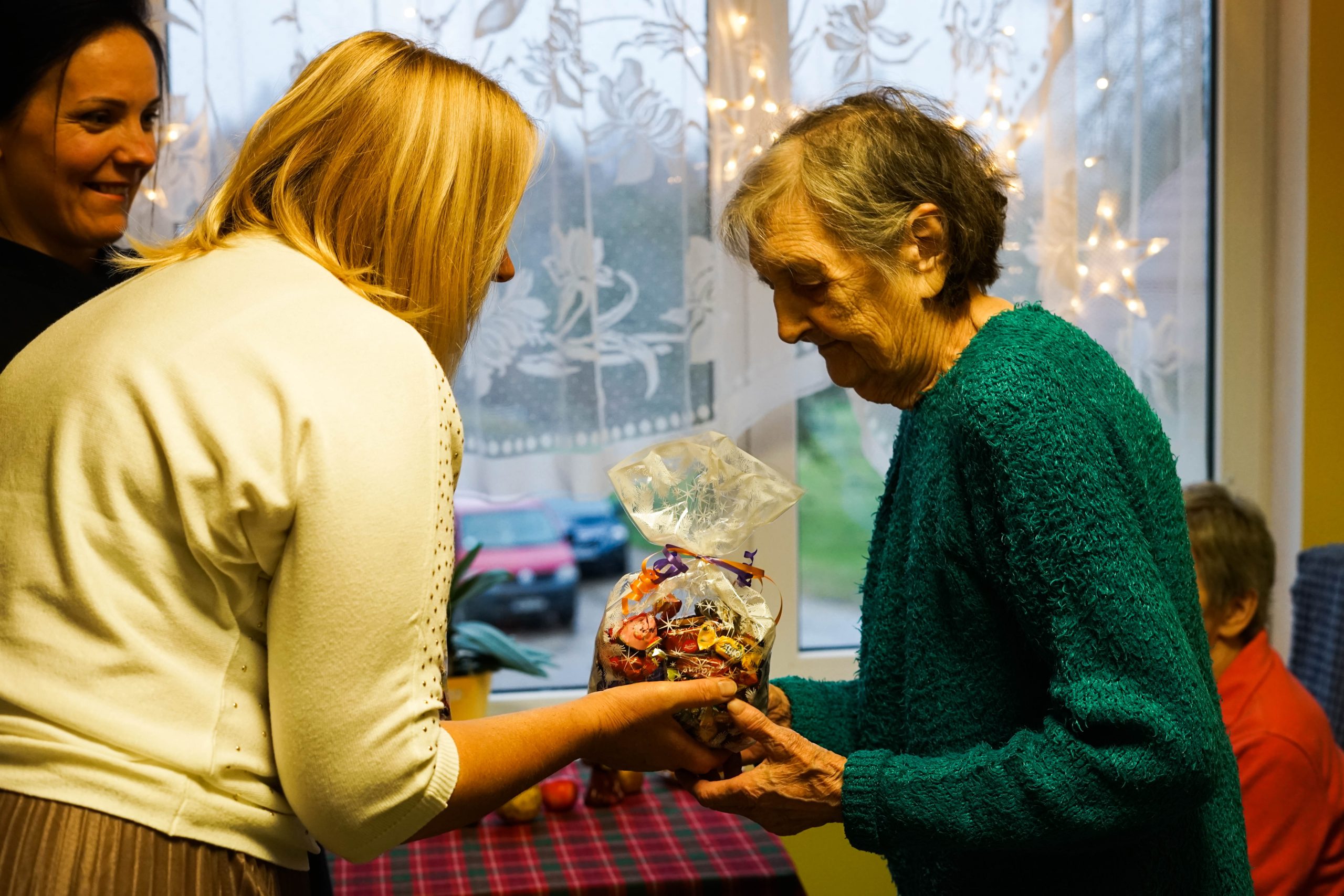 Katrs nodaļas iedzīvotājs tika iepriecināts ar saldumu paciņu, svētku dzejoļiem un jaukām dziesmām. Kuldīgas novada pašvaldības Izpilddirektora vietniece Agnese Buka: “Jūs, mīļie seniori, šajā svētku laikā esat tie, kas palīdz mums apstāties un sajust Ziemassvētku mieru. Mēs no Jums to kopīgi mācāmies, jo Jūsos ir dzīves gudrība, sirds siltums un došanas prieks. Par to paldies!”