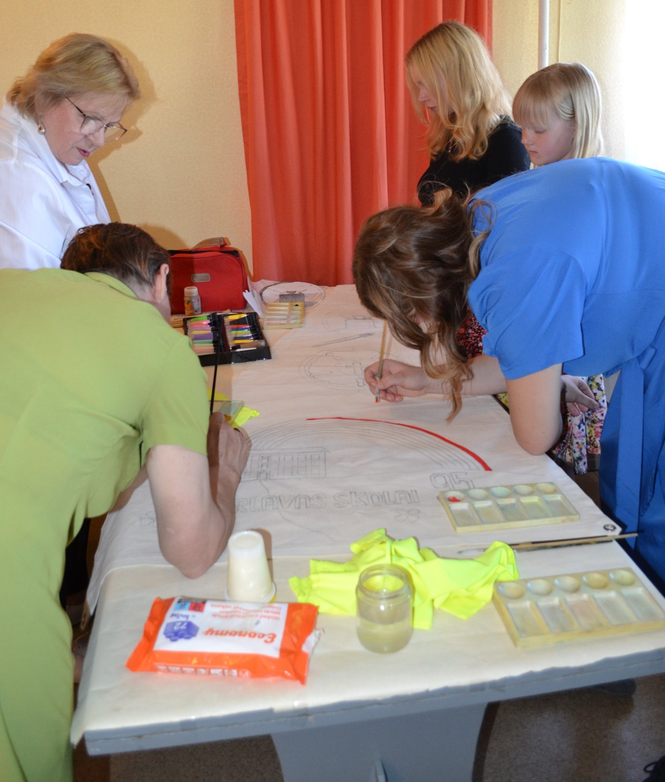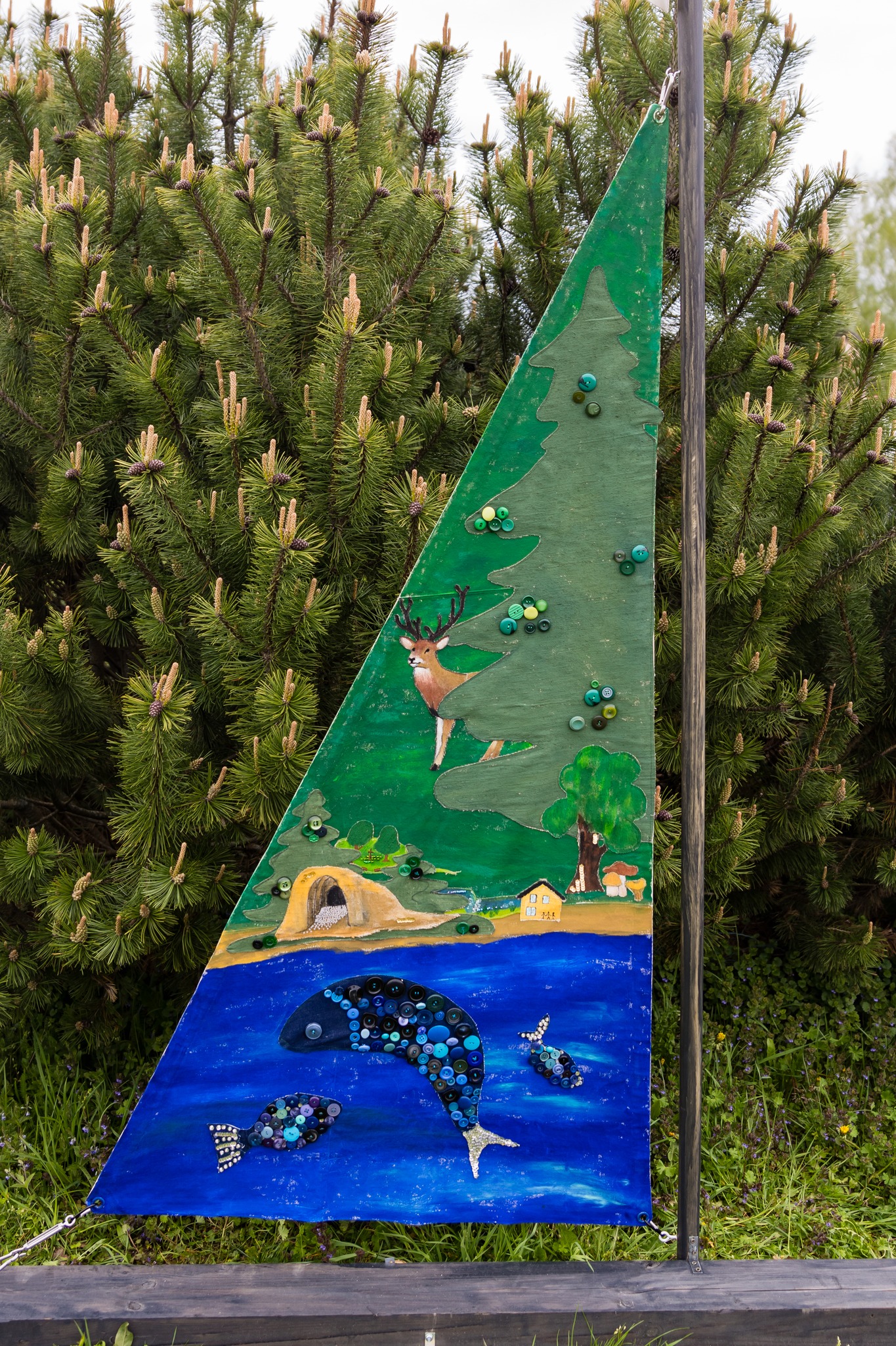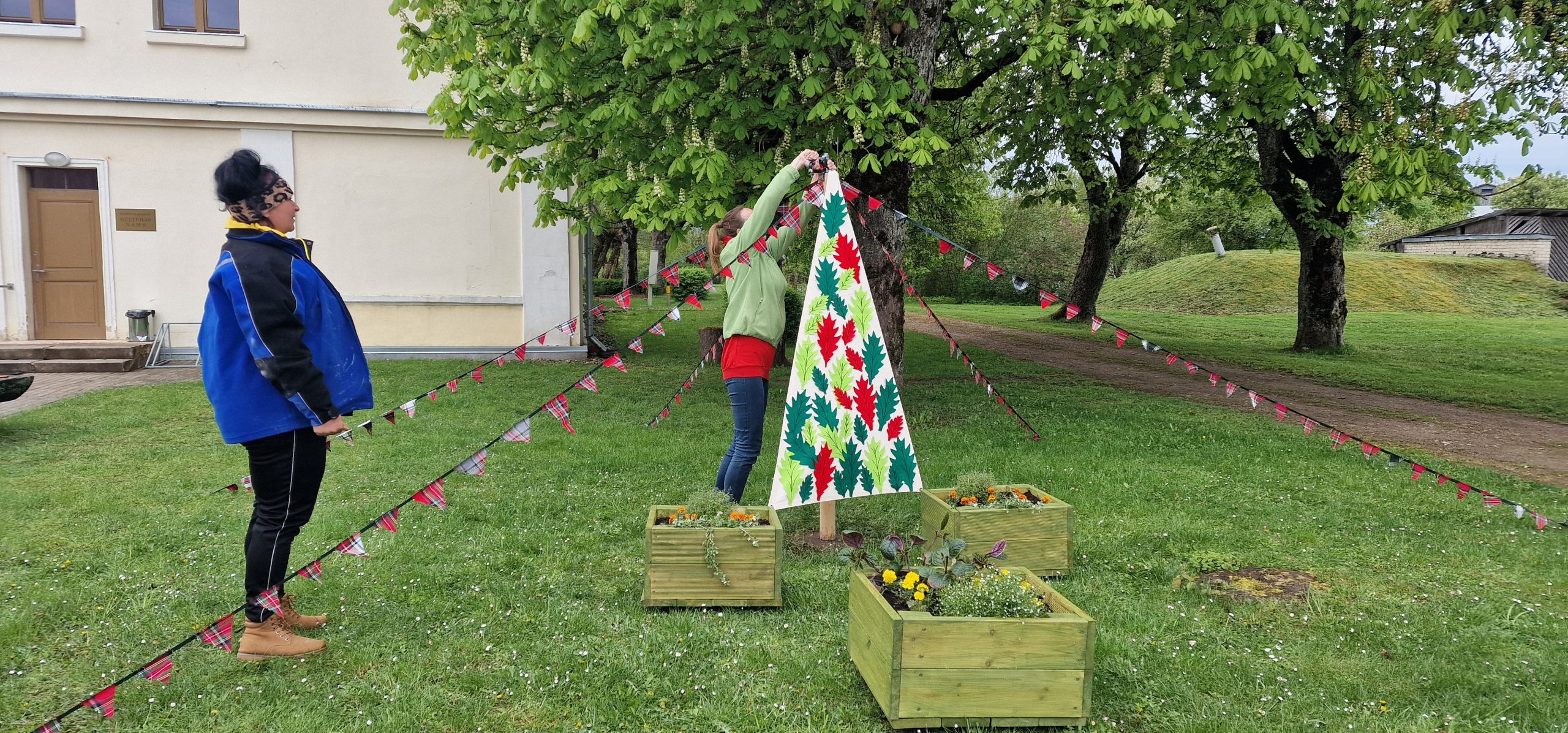 Kuldīgā, skvērā pie Adatu fabrikas – ikviens interesents tika aicināts piedalīties radošā darbnīcā kopā ar māksliniekiem Ievu Vītolu-Lindkvistu un Oli Lindkvistu. Kopīgiem spēkiem un idejām tika apgleznotu bura un turpat arī pacelta.
