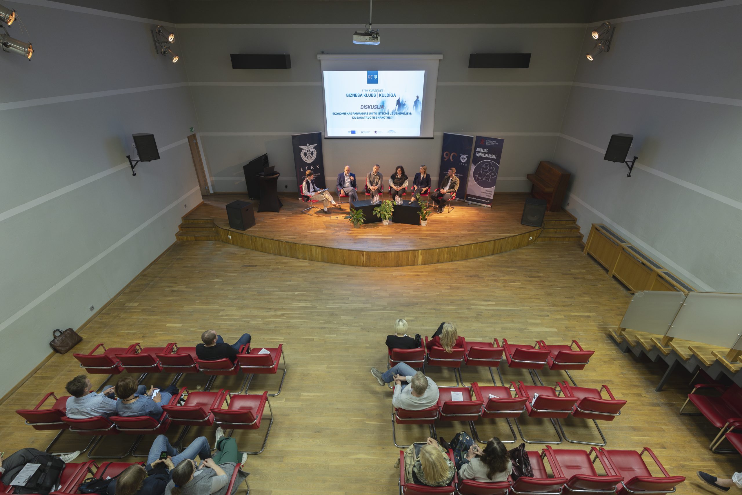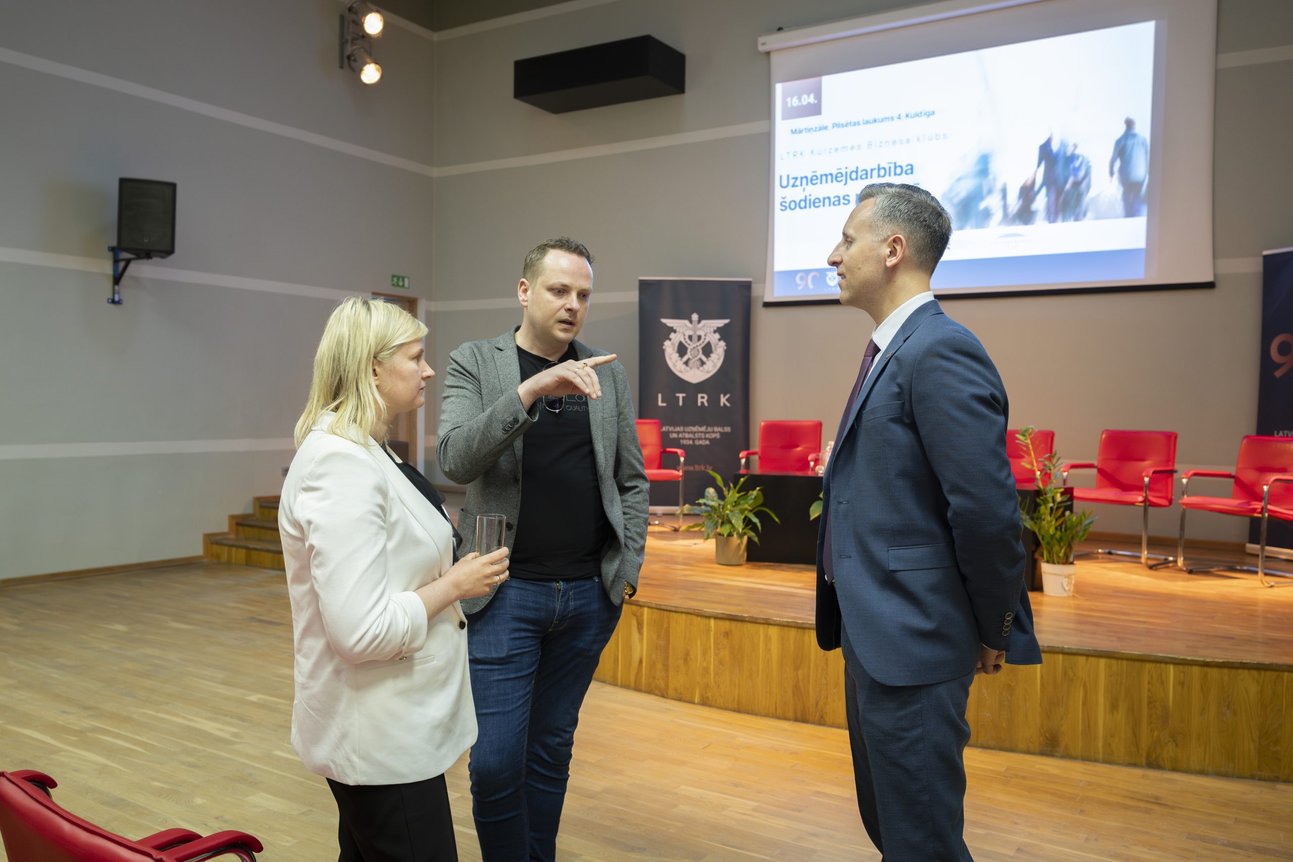 Trešdien, 16. aprīlī Kuldīgā norisinājās LTRK Kurzemes Biznesa kluba pasākums Uzņēmējdarbība šodienas pasaulē, kurā pulcējās vairāk kā 60 interesenti, t.sk., uzņēmēji, valsts un pašvaldību pārstāvji un nozaru eksperti, lai apspriestu aktuālās ekonomikas tendences, akciju tirgus dinamiku, kiberdrošības jautājumus.
