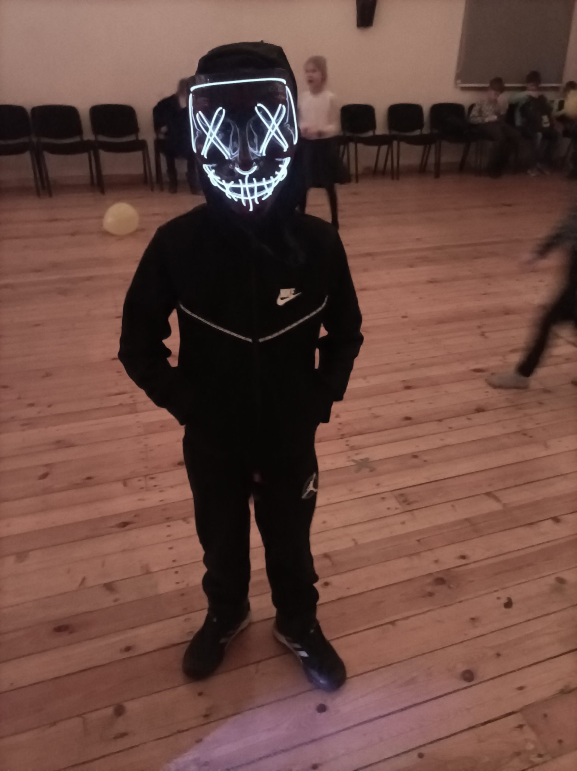 Uz balli bija ieradušies vairāki masku tēli: kaķi, princeses, rūķi, Harijs Poters, Betmens, neredzamais cilvēks un citi. Bērnu un jauniešu centra darbinieces Sindija un Anda iesaistīja klātesošos jautrās spēlēs un rotaļās, kopīgi dejoja “Just Dance” ritmos un ļāva bērniem izpaust savu  radošumu  arī citos veidos.