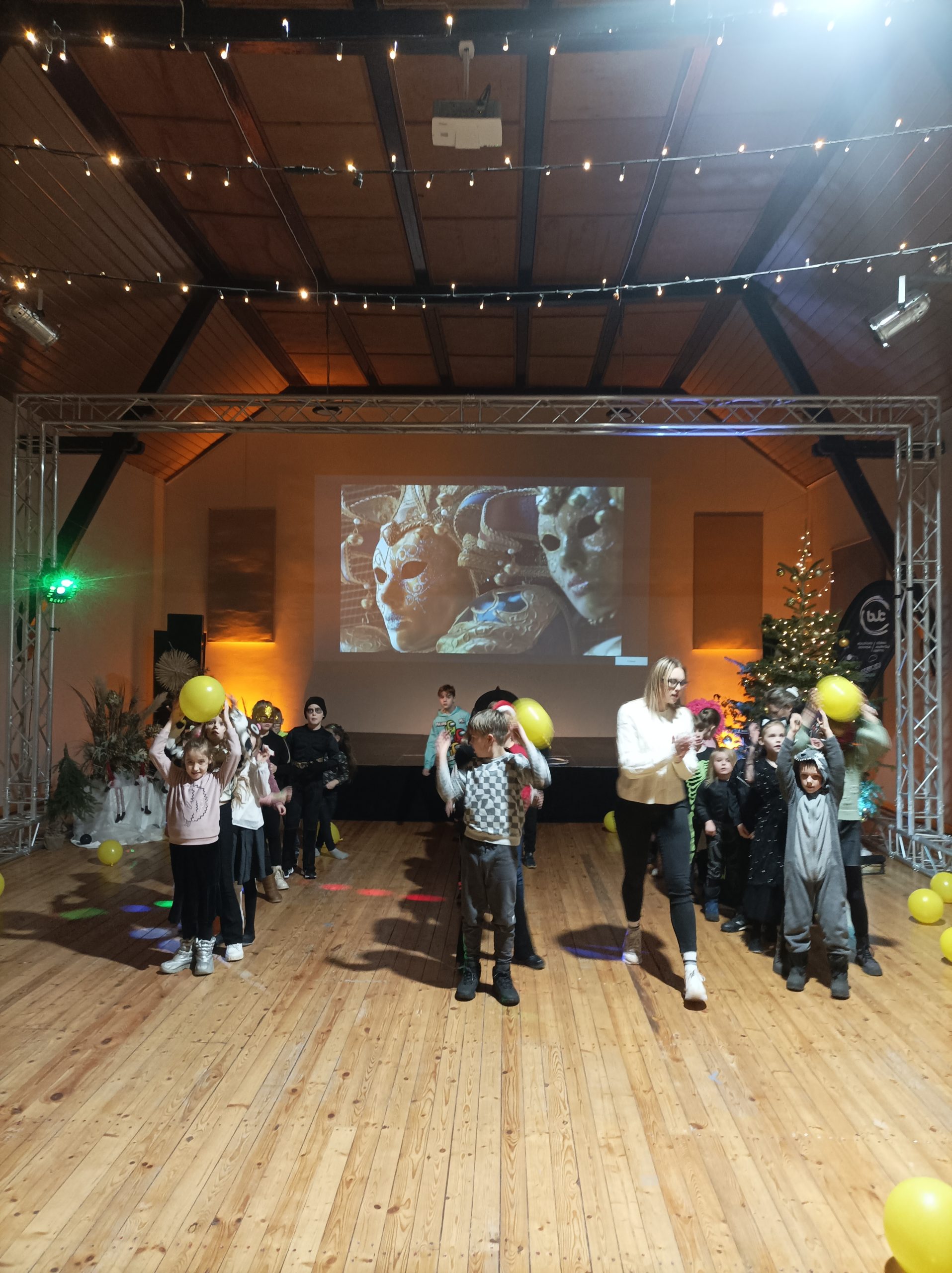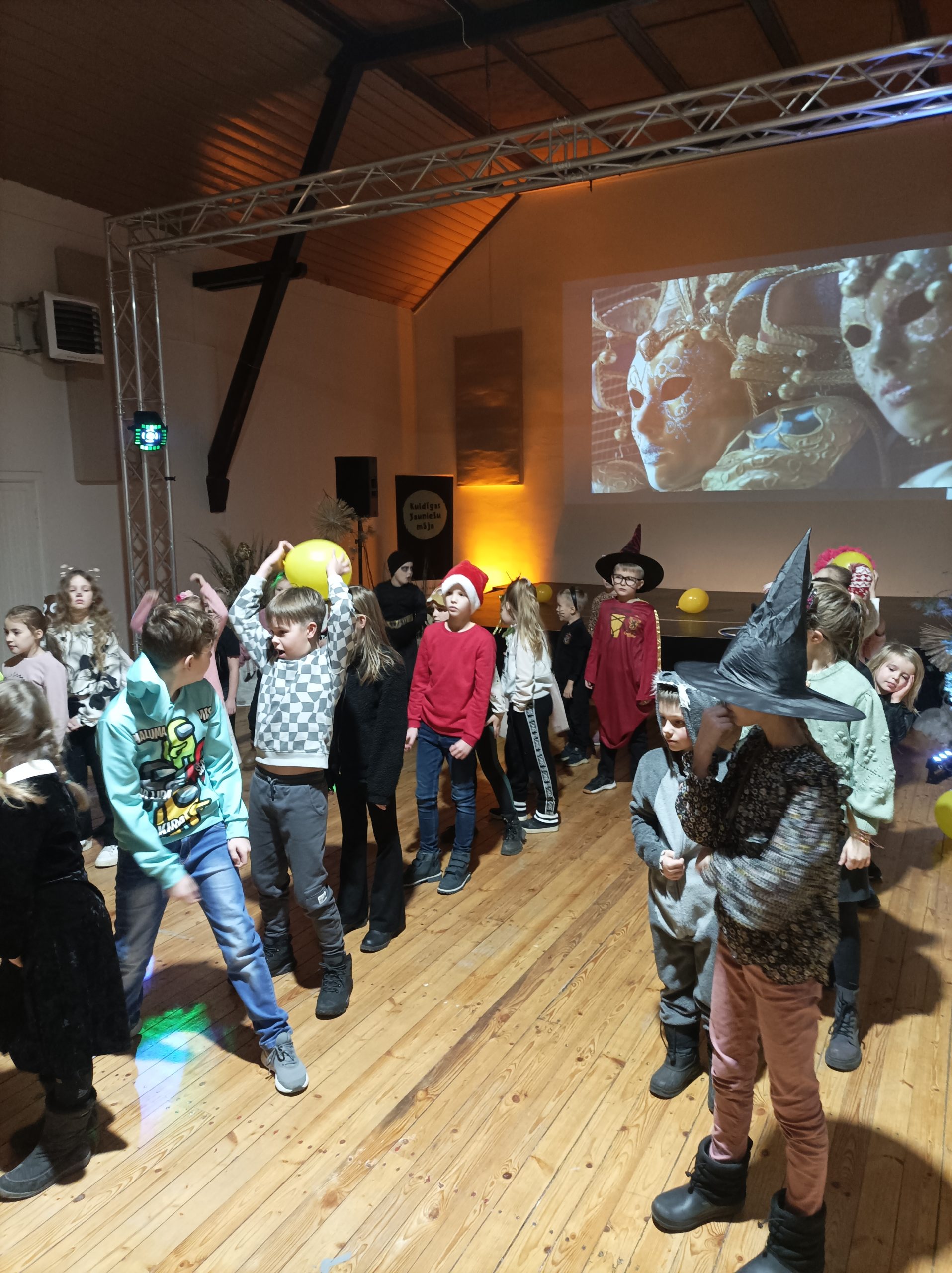Kuldīgas Jauniešu mājā ceturtdien, 4. janvāra vakarpusē pulcējās Masku balles dalībnieki.  Ap 30 bērni piepildīja pasākumu zāli ar čalām, smiekliem un prieku par atkalredzēšanos pēc brīvlaikā pavadītām dienām.