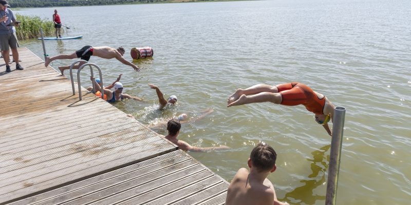 Reģistrēšanās sacensībām notiks no plkst. 11.30 līdz 12.30; sacensības oficiāli atklās plkst. 13.00. Dalībnieki aicināti izmēģināt spēkus gan “Tautas klasē”, peldot 80 un 400 metrus, “Izaicinājuma distancē” pārvarot 800 metrus, gan “Sporta klasē”, kur 2.4 km garā distancē  gaidīs pašus izturīgākos peldētājus.