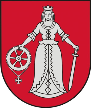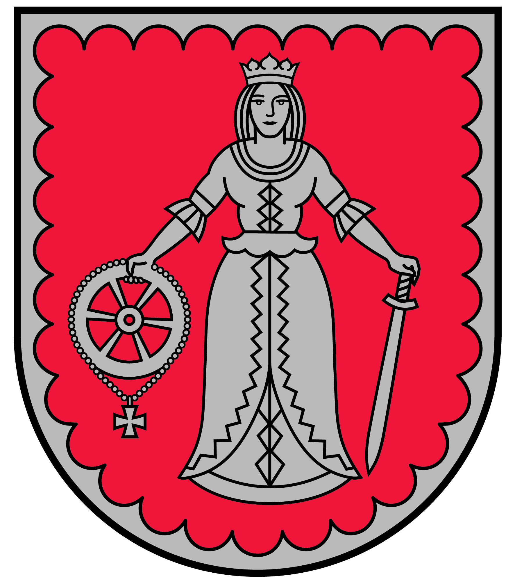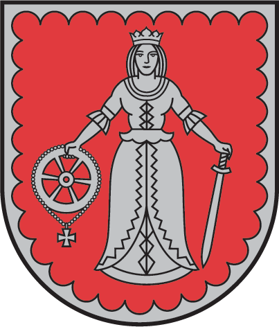 Heraldiskais apraksts – „Sarkanā laukā sudraba jaunava – Sv.Katrīna – ar kroni; labajā rokā tāds pats rats ar tam piekārtu krustiņu, kreisajā – lejupvērsts zobens; sudraba izrobota šaurapmale”.