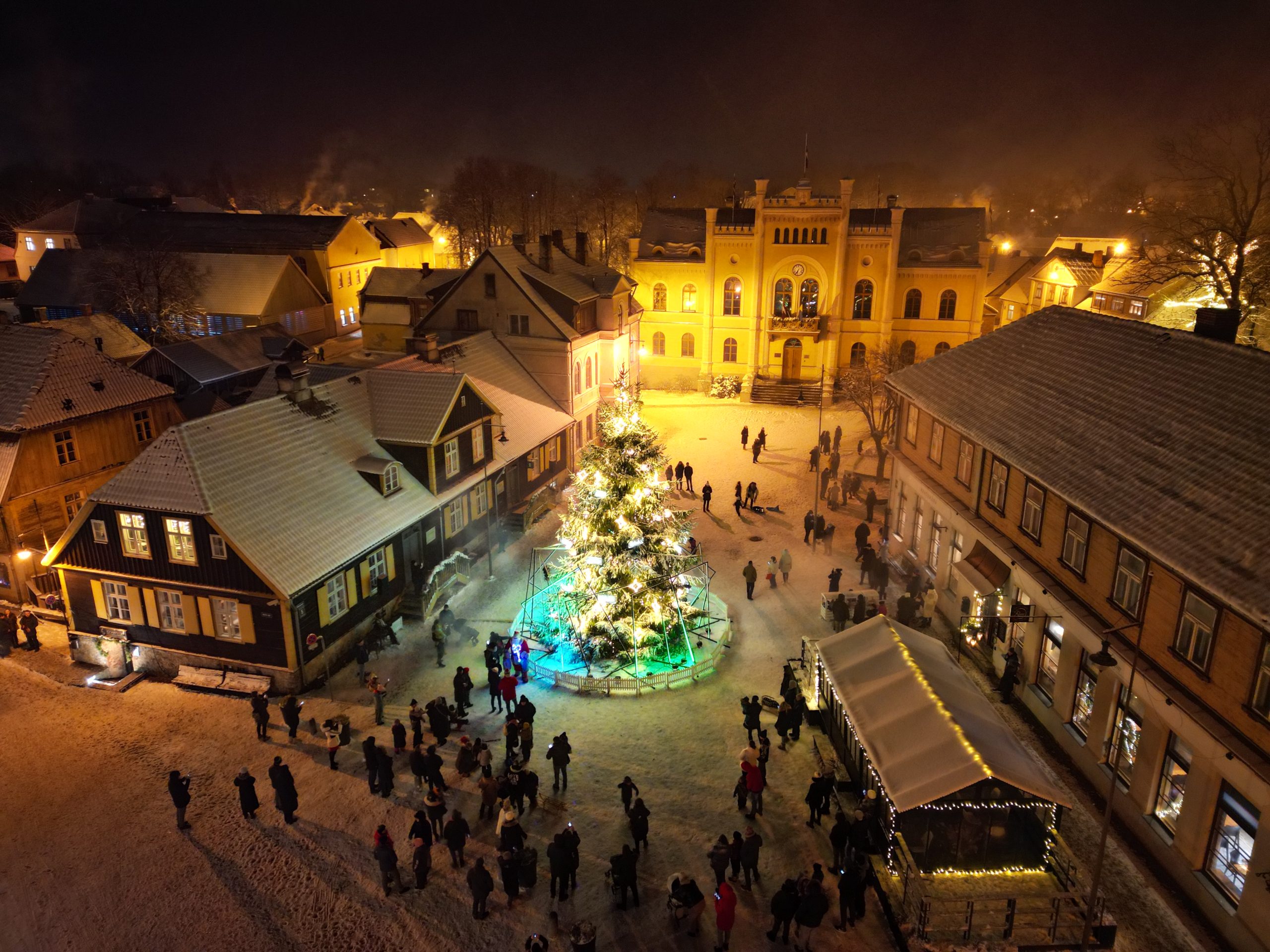 Kā jau katru gadu, arī šoreiz mūsu novada pilsētās un pagastos priecē svētku noskaņa, kuru vēl īpašāku dara baltā sniega sega. Kuldīgu, Skrundu un novada pagastus izgaismo lampiņu virtenes, ielās un parkos iegūluši skaisti rotājumi un dekori.