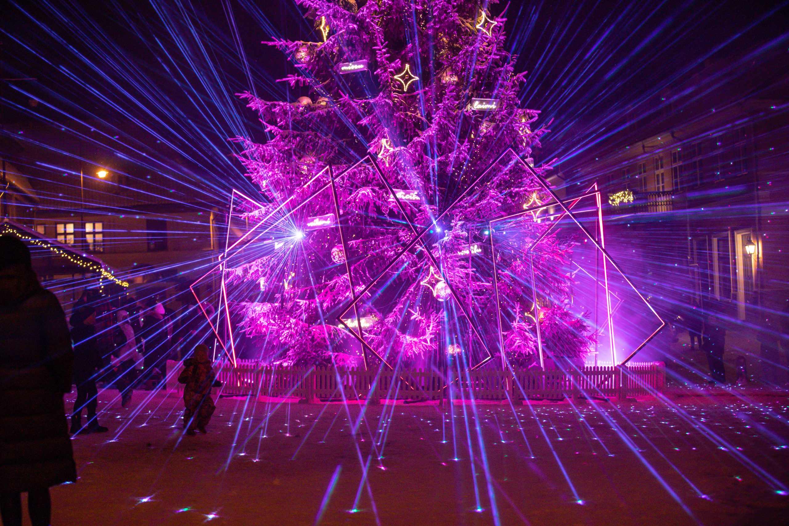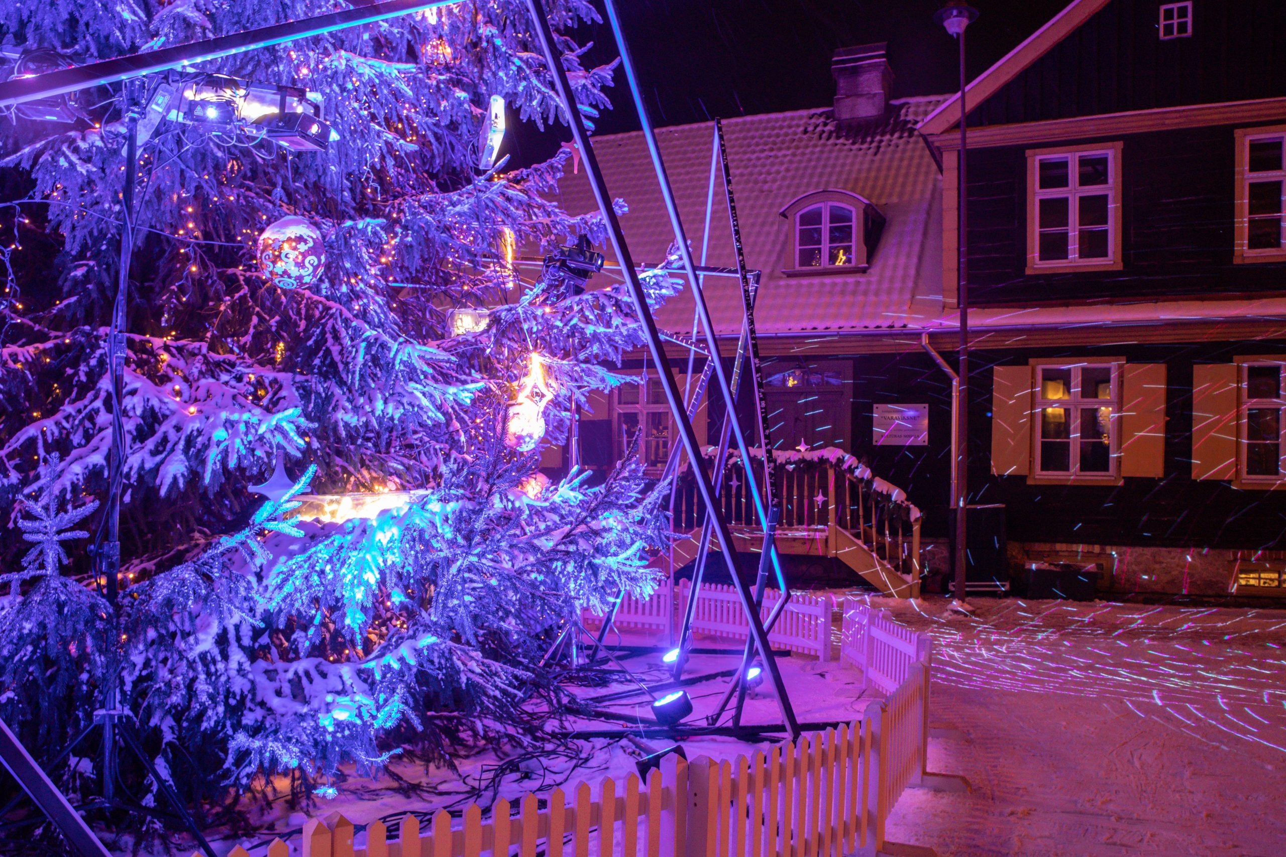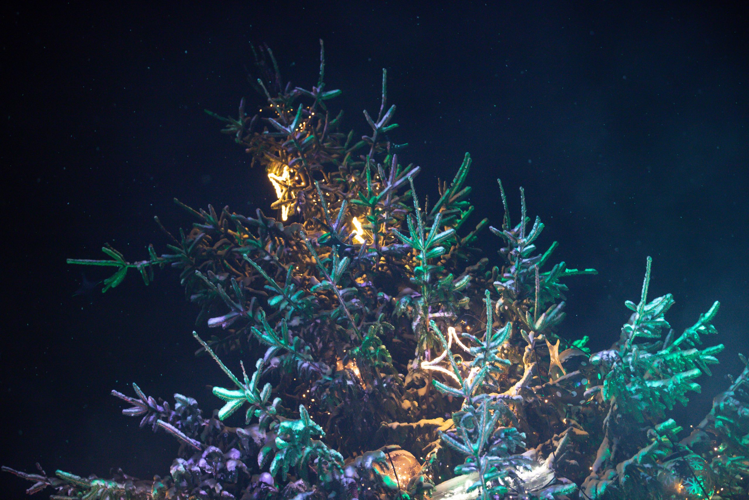 Spoži iemirdzējusies Kuldīgas skaistākā egle
