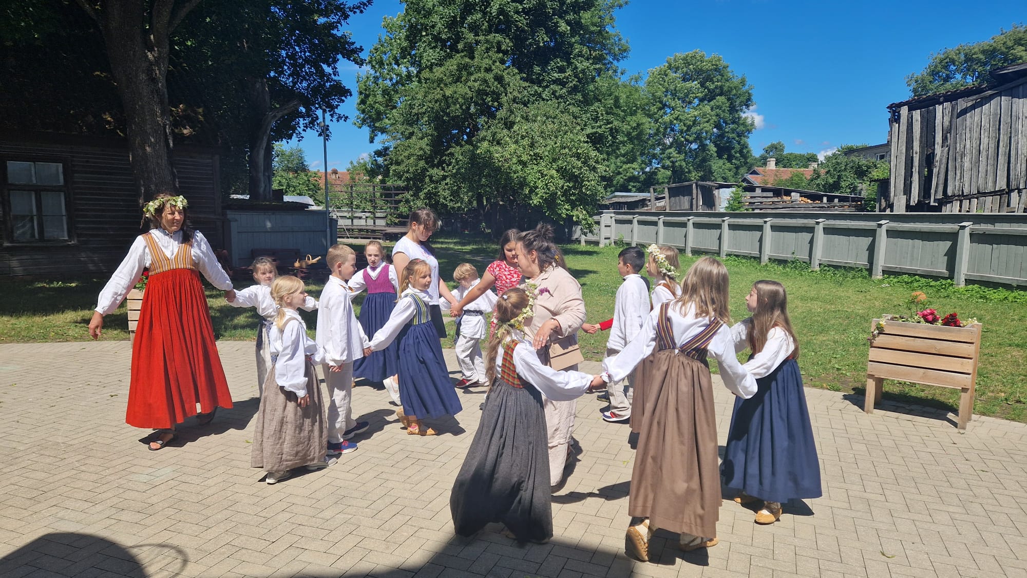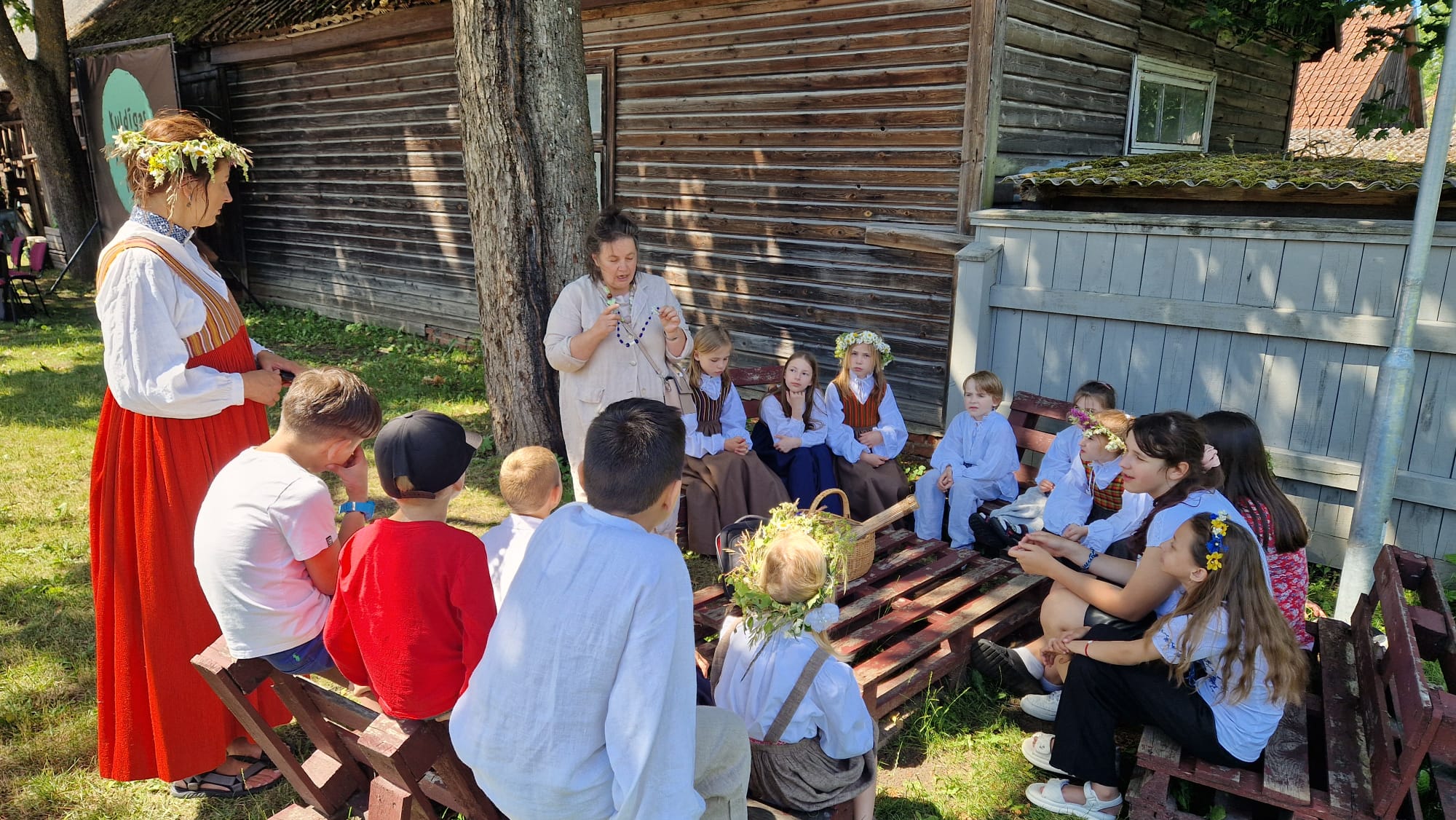 Radošo nodarbību noslēgumā Ikvienam, kurš vēlējās, bija iespēja uzvilkt latviešu tautastērpu, kā arī pīt ziedu vainagus. Tāpat bērni tika sēdināti pie svinīgi klāta galda, pie kura varēja cienāties ar Jāņu sieru, pīrāgiem, raušiem un kvasu.