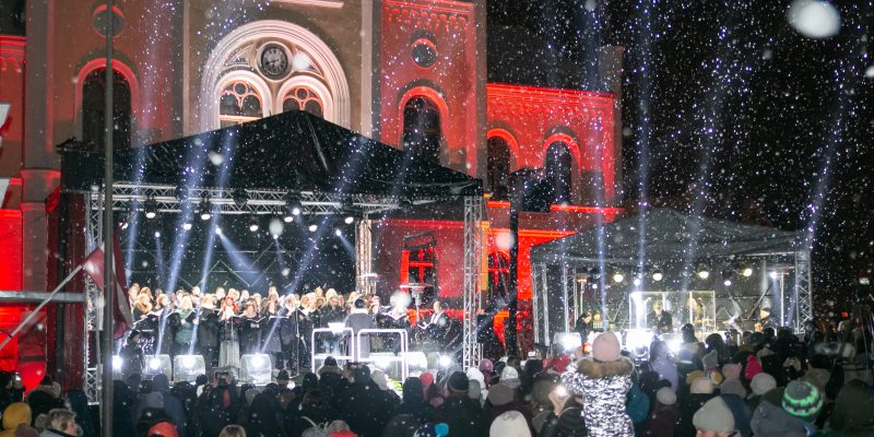 Stiprinot kopības sajūtu, arī šogad Latvijas Republikas proklamēšanas dienā, 18. novembrī plkst. 17:00, Kuldīgas Rātslaukumā visus svētkos ar sirsnīgu koncertu sveiks Kuldīgas novada kopkoris.  Šogad svētku sajūtu radīs ne tikai skanīgās novadnieku balsis, bet arī  patriotiskā noskaņā sapostā pilsēta un Latvijas karoga krāsās izgaismotā Ventas rumba, kas iemirdzēsies no plkst. 17:00 līdz 22:00.